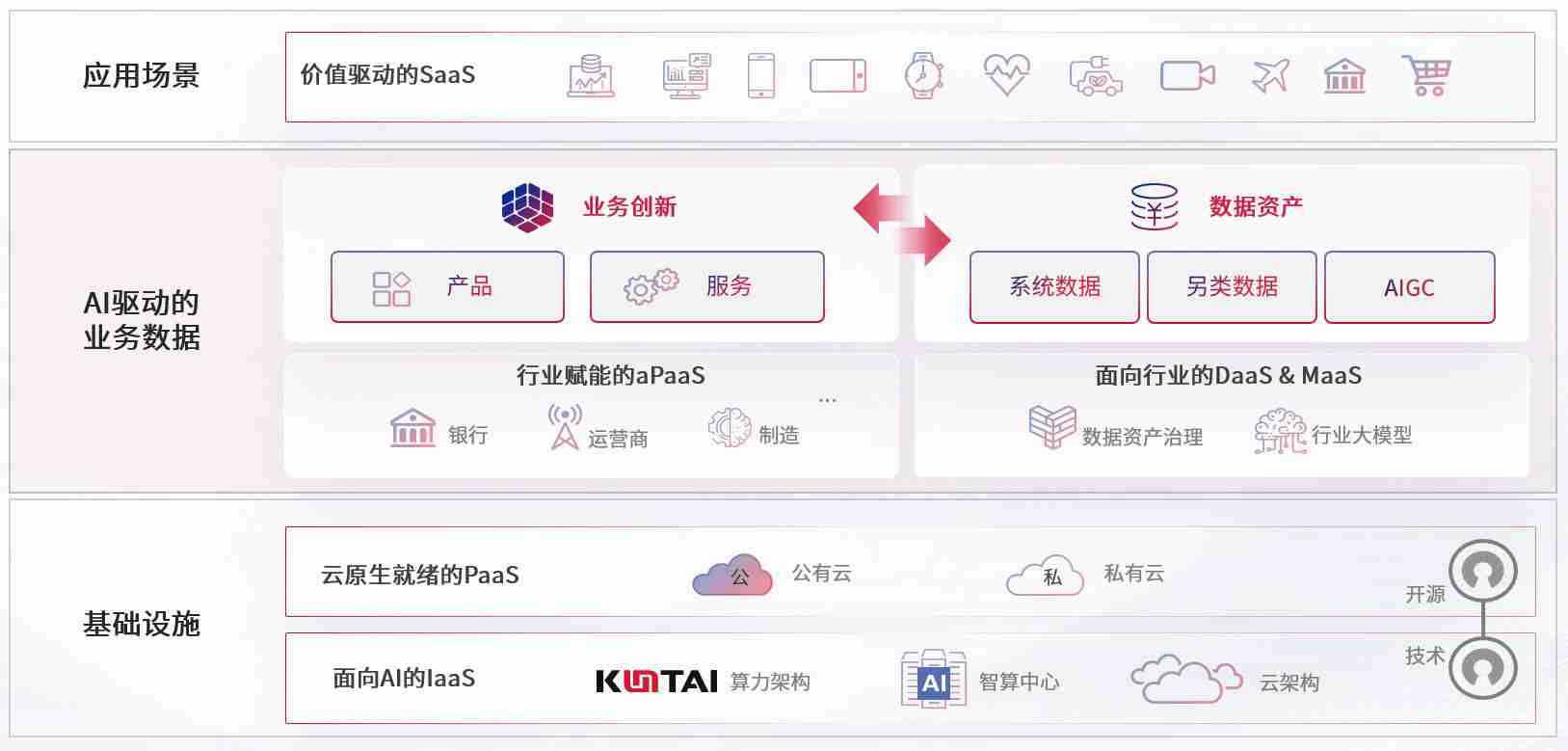 数字时代,,围绕企业数字化转型的关键要素,,,z6尊龙数码开创性的提出数云融合战略和技术体系框架,,,着力在云原生、、、、数字原生、、AI原生和信创产业上架构产品和服务能力,,,为处在不同数字化转型阶段的快消零售、、、汽车、、、金融、、、医疗、、、政企、、教育、、运营商等行业客户提供泛在的敏捷IT能力和融合的数据驱动能力,,,,构建跨界融合创新的数字业务场景和新业务模式,,助力企业级客户建立面向未来的核心能力和竞争优势,,全面推动社会的数字化、、、智能化转型升级。。。